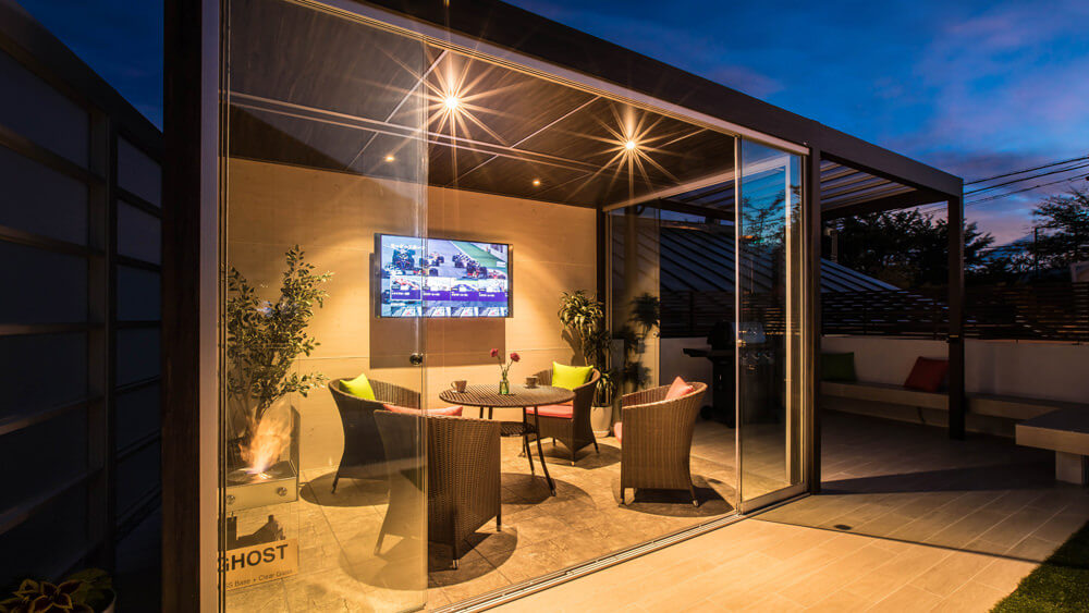 お庭をきれいにすることによって、家もとても素敵に見えるはず。休日にはお庭にある離れのテラスで寝そべってくつろぎ、ご家族やわんことバーベキューをしながら過ごす。仕事が終わって家に帰ると、そこにはライトアップされたお庭が。デッキにある椅子に腰かけ、ご夫婦でグラスを傾ける。『早くお家に帰りたい!』そう思っていただけるお庭が、もしあなたの家にあったら…。