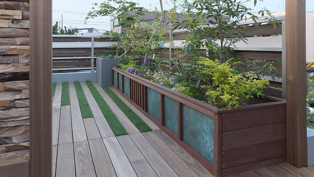 これまでには、樹木や天然木などの自然素材を活かしたフェンスづくりを行ったり、ベランダを坪庭風にしたりと、お客様の生活空間の快適さと美観を追求した高品質なお庭づくりを行っています。