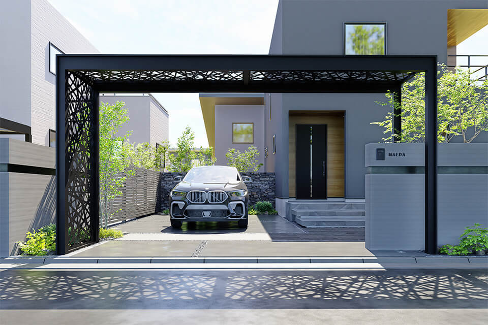 天井・側面に採用しているデザインパネルは、印象の異なる2種類をご用意。それぞれのデザインで生まれる陰影の表情が、空間に奥行きとリズムをもたらし、ワンランク上のファサードを演出します。