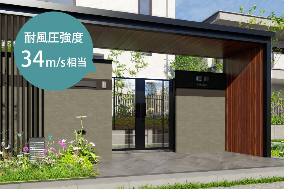 34m/s相当の優れた耐風圧強度を誇る安心設計。強風時にも安定した性能を発揮し、大切な住まいをしっかりと守ります。