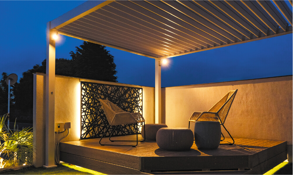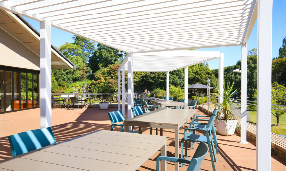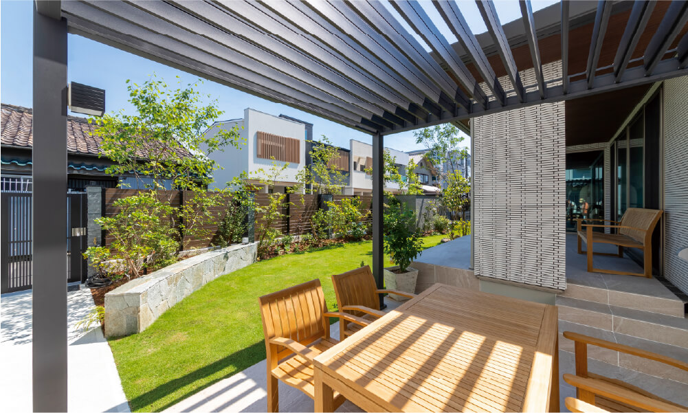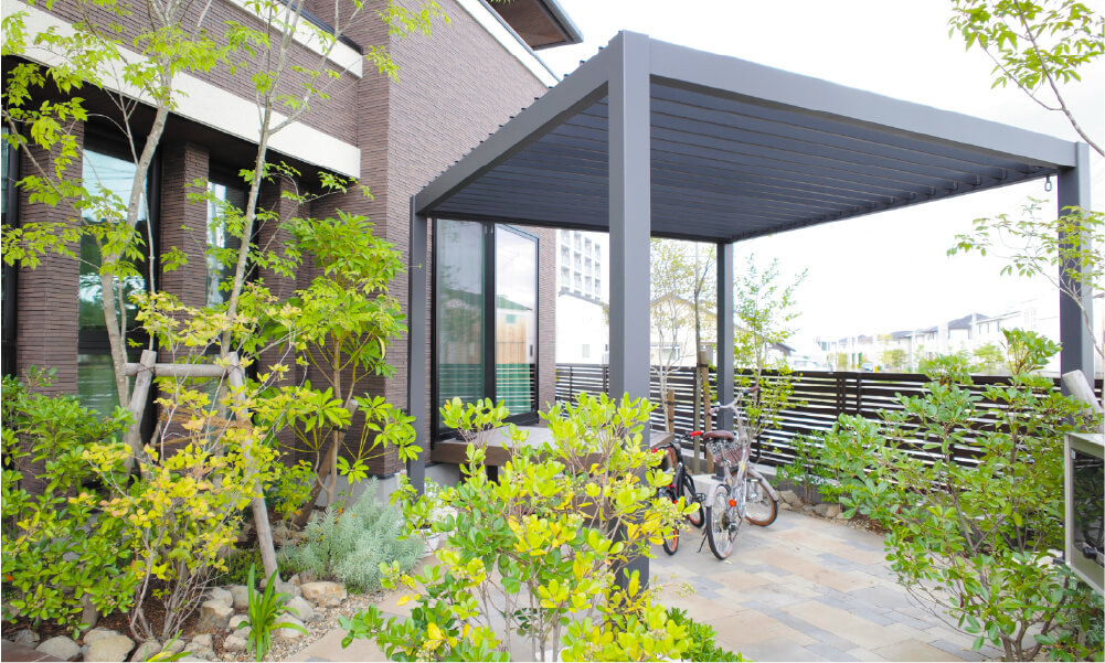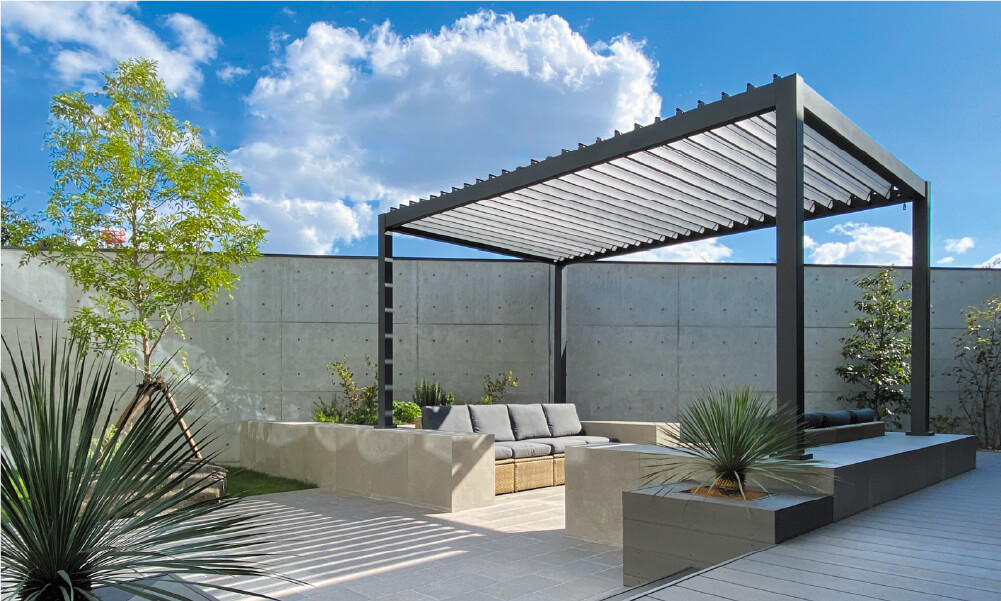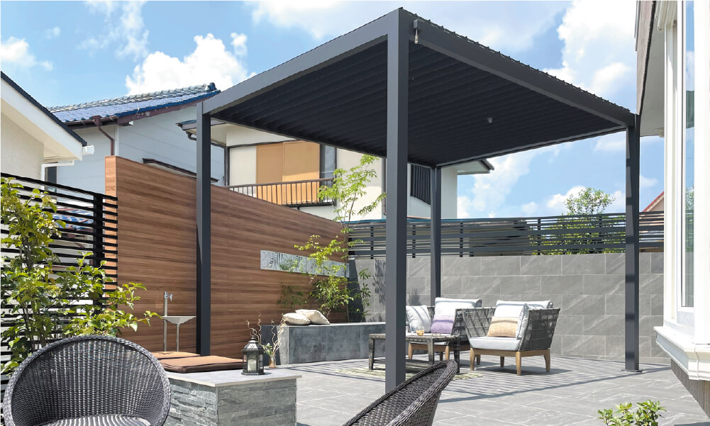 開閉できるルーフを持つことで天気に合わせたテラスの使い方ができるようになり、より一層豊かなガーデンライフを生み出します。